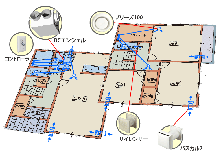 排気型24時間セントラル換気システムです。北見工業大学流体工学研究室との共同開発品で生まれた、高性能DCモーター採用の省エネ換気ファンです。ACモーター仕様の換気システムと比べ、50%以上の省エネを達成し、二酸化炭素の排出量削減へ大きく貢献します。このHiパワー、コンパクト、サイレントFan「DCエンジェル」は、さらに使い易さ追求するため、モーターを外してメンテナンスできるようにしました。